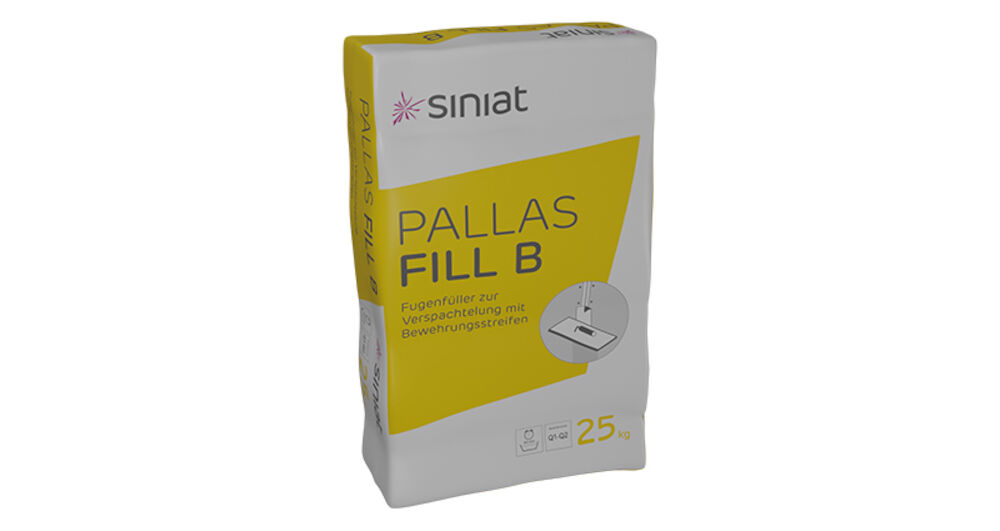 Verarbeitung: Die abgeflachten Längskanten und die angefasten Querkanten mit Pallas fill B voll ausfüllen und flächenbündig abziehen. Bewehrungsstreifen in den weichen Fugenfüller einlegen und mit der Spachtel glatt streichen. Der Spachtel ist ca. 65 Min verarbeitbar bevor er abbindet. Nach dem Abbinden nachspachteln bis eine übergangslose Fläche hergestellt ist. Bei Bedarf lässt sich das Verfugungsmaterial leicht mit Sandpapier/Schleifgitter schleifen.